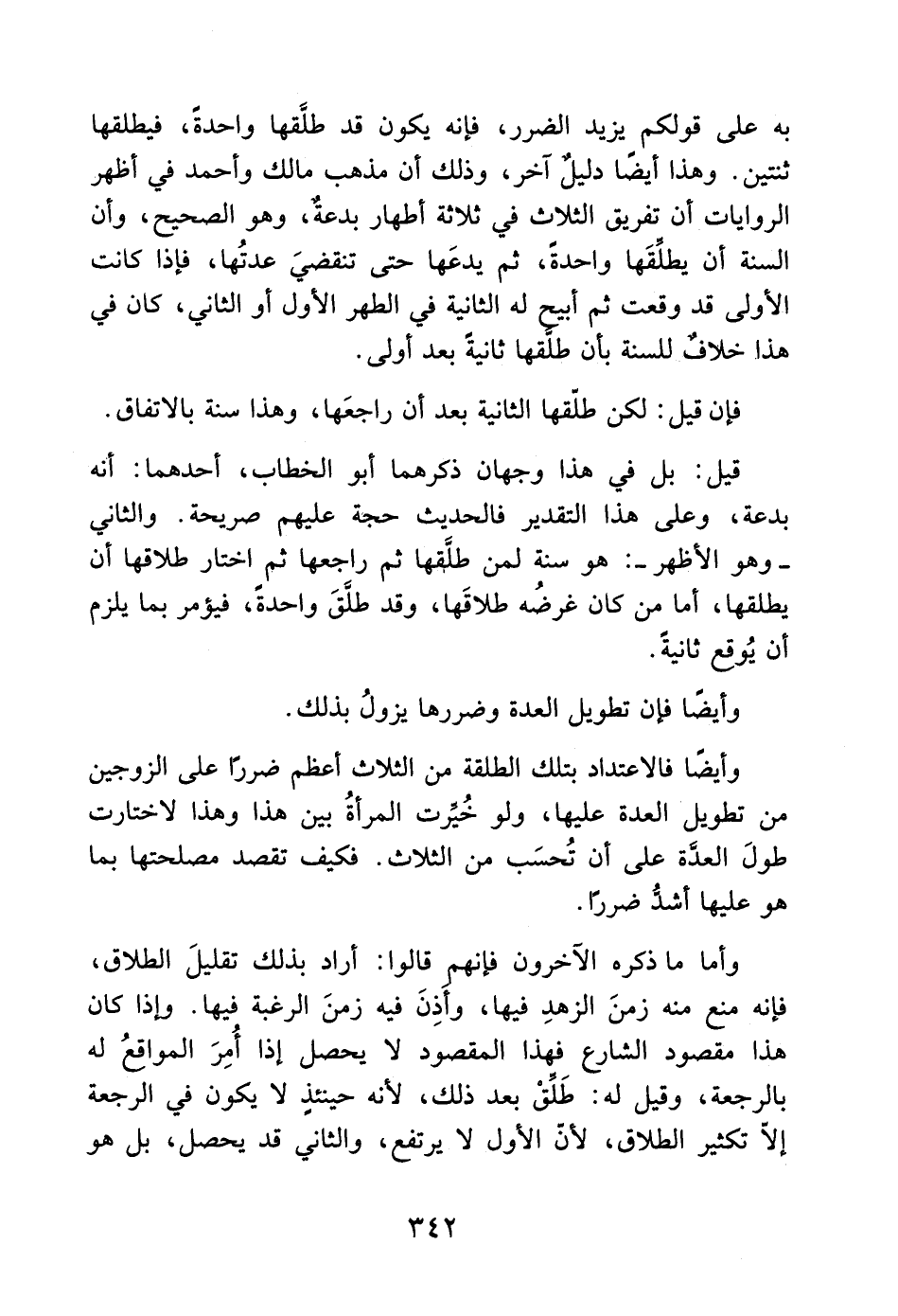 به على قولكم يزيد الضرر، فإنه يكون قد طلَّقها واحدةً، فيطلقها ثنتين. وهذا أيضًا دليل آخر، وذلك أن مذهب مالك وأحمد في أظهر الروايات أن تفريق الثلاث في ثلاثة أطهار بدعة، وهو الصحيح، وأن السنة أن يطلقَها واحدةً، ثم يدعَها حتى تنقضيَ عدتُها، فإذا كانت الأولى قد وقعت ثم أبيح له الثانية في الطهر الأول أو الثاني، كان في هذا. خلاف للسنة بأن طلقها ثانيةً بعد أولى.