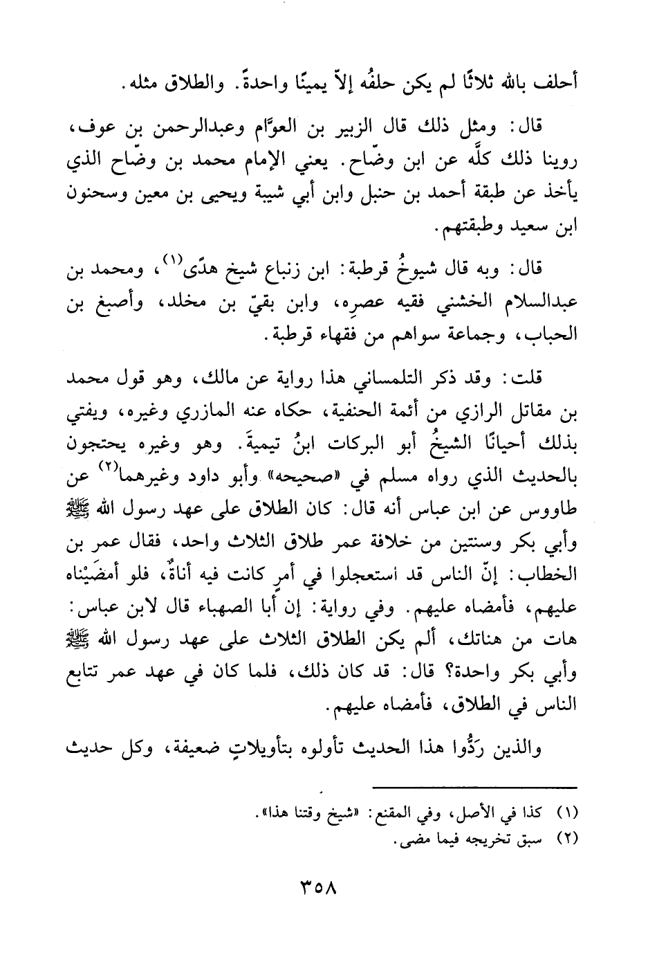 قال: ومثل ذلك قال الزبير بن العوَّام وعبد الرحمن بن عوف، روينا ذلك كلَّه عن ابن وضّاح. يعني الإمام محمد بن وضّاح الذي يأخذ عن طبقة أحمد بن حنبل وابن أبي شيبة ويحيى بن معين وسحنون ابن سعيد وطبقتهم.