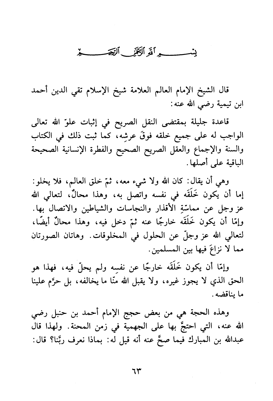 قال الشيخ الإمام العالم العلامة شيخ الإسلام تقي الدين أحمد ابن تيمية رضي الله عنه: