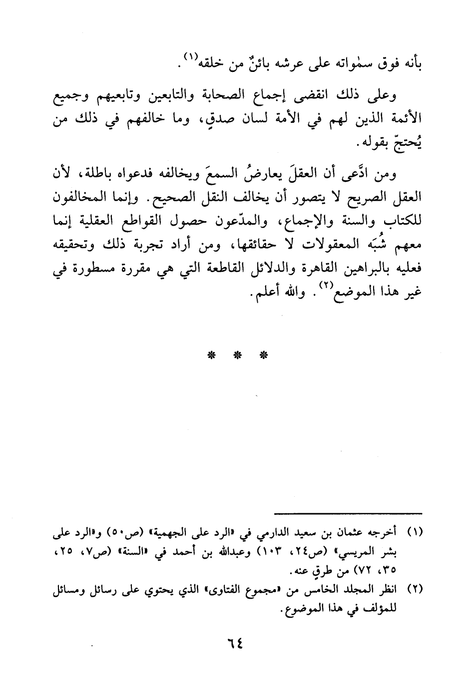 (2) انظر المجلد الخامس من "مجموع الفتاوى" الذي يحتوي على رسائل ومسائل للمؤلف في هذا الموضوع.