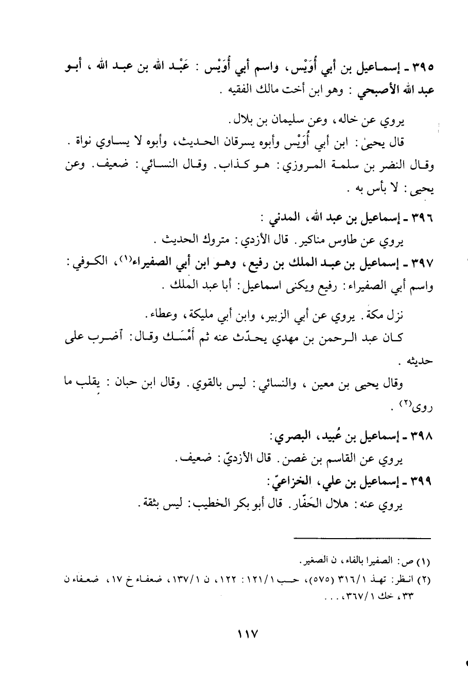 397 - إِسْمَاعِيل بن عبد الْملك بن رفيع وَهُوَ ابْن أبي الصفيراء الْكُوفِي وَاسم أبي الصفيراء رفيع ويكنى إِسْمَاعِيل أَبَا عبد الْملك