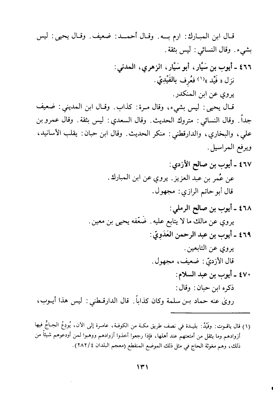 روى عَنهُ حَمَّاد بن سَلمَة وَكَانَ كذابا قَالَ الدَّارَقُطْنِيّ لَيْسَ هَذَا أَيُّوب إِنَّمَا هُوَ أَبُو عبد السَّلَام
