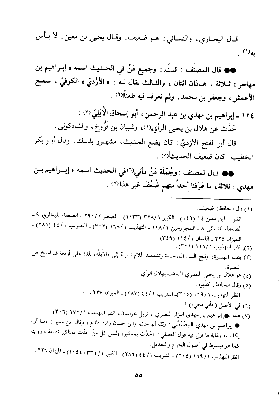 قَالَ المُصَنّف وَجُمْلَة من يَأْتِي فِي الحَدِيث اسْمه إِبْرَاهِيم بن مهْدي ثَلَاثَة مَا عرفنَا مِنْهُم ضعف غي هَذَا