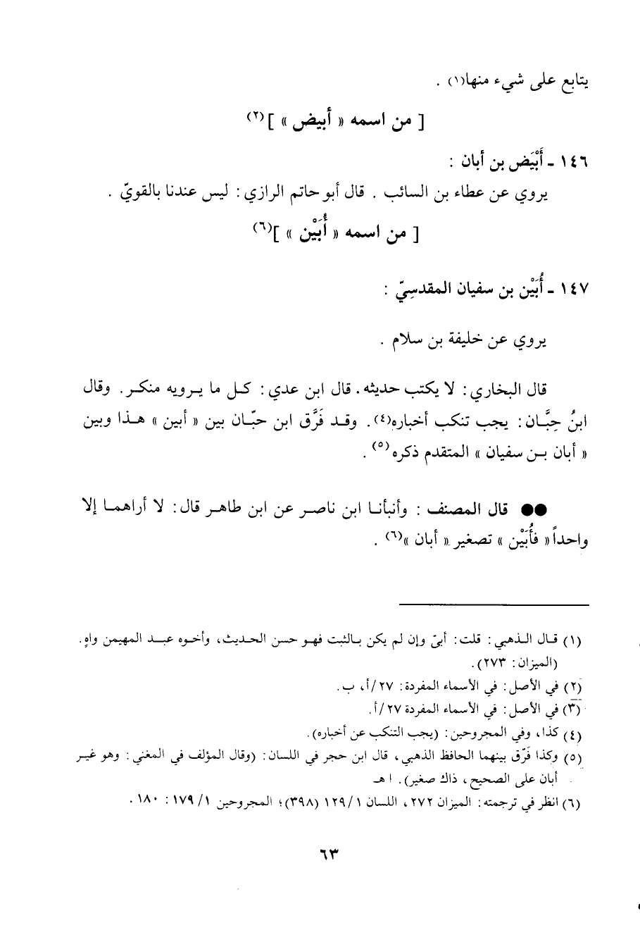 قَالَ المُصَنّف وأنبأنا ابْن نَاصِر عَن ابْن طَاهِر قَالَ لَا أراهما إِلَّا وَاحِدًا فأبين تَصْغِير أبان