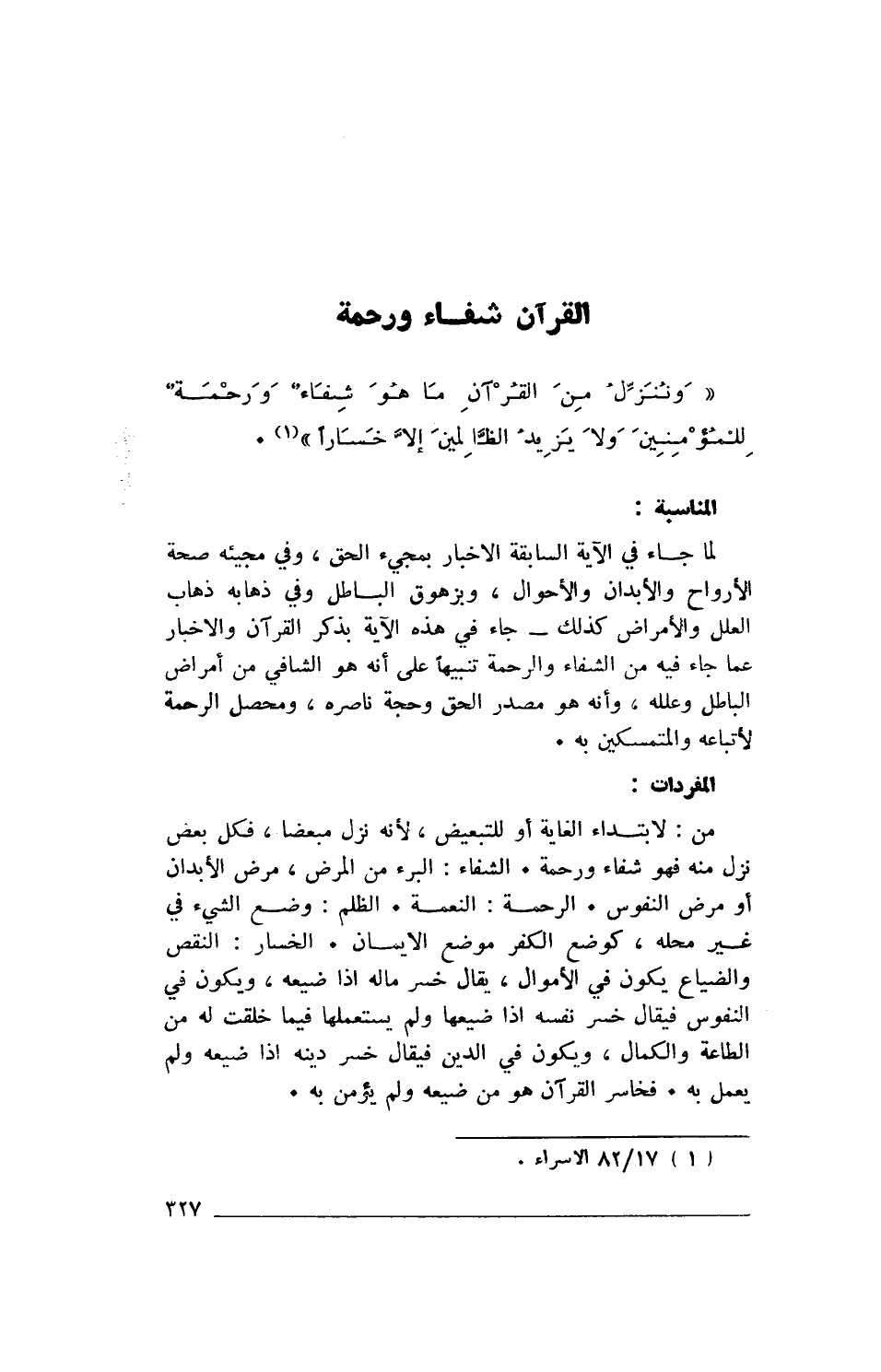 (1) 82/ 17 الإسراء.