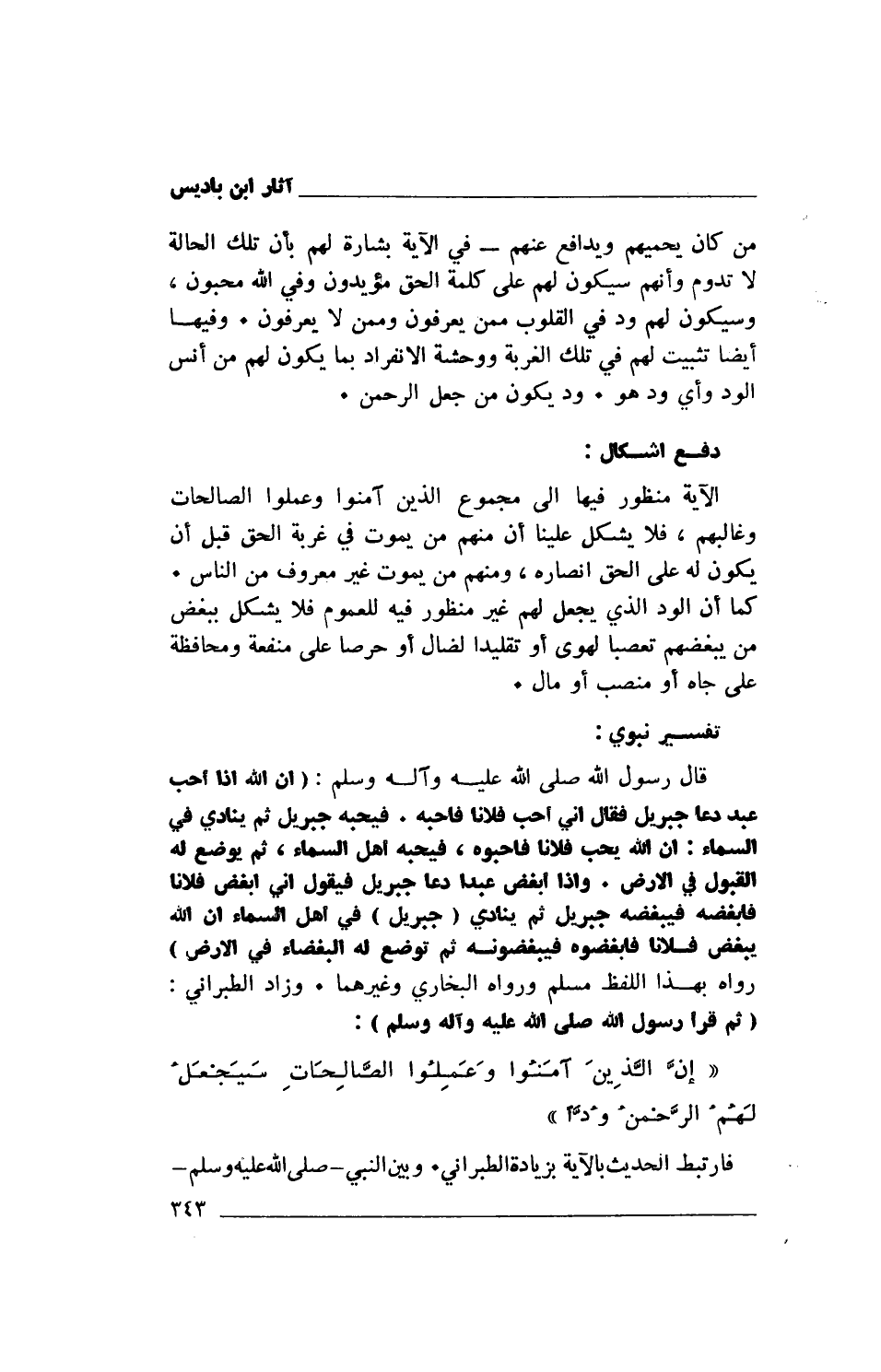 {إِنَّ الَّذِينَ آمَنُوا وَعَمِلُوا الصَّالِحَاتِ سَيَجْعَلُ لَهُمُ الرَّحْمَنُ وُدًّا}