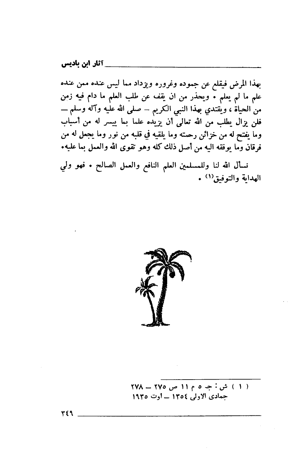 (1) ش: ج5 م11 ص 275 - 278 جمادى الأولى 1354 - أوت 1935