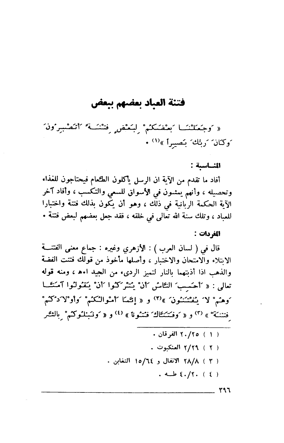 {وَجَعَلْنَا بَعْضَكُمْ لِبَعْضٍ فِتْنَةً أَتَصْبِرُونَ وَكَانَ رَبُّكَ بَصِيرًا} (1)