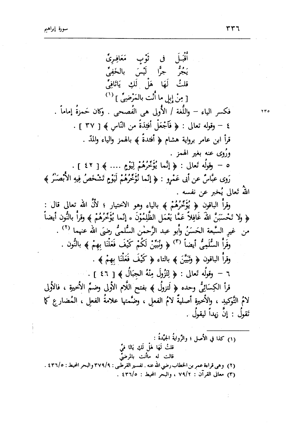 (¬٣) معانى القرآن: ٢/ ٧٩، والبحر المحيط: ٥/ ٤٣٦.