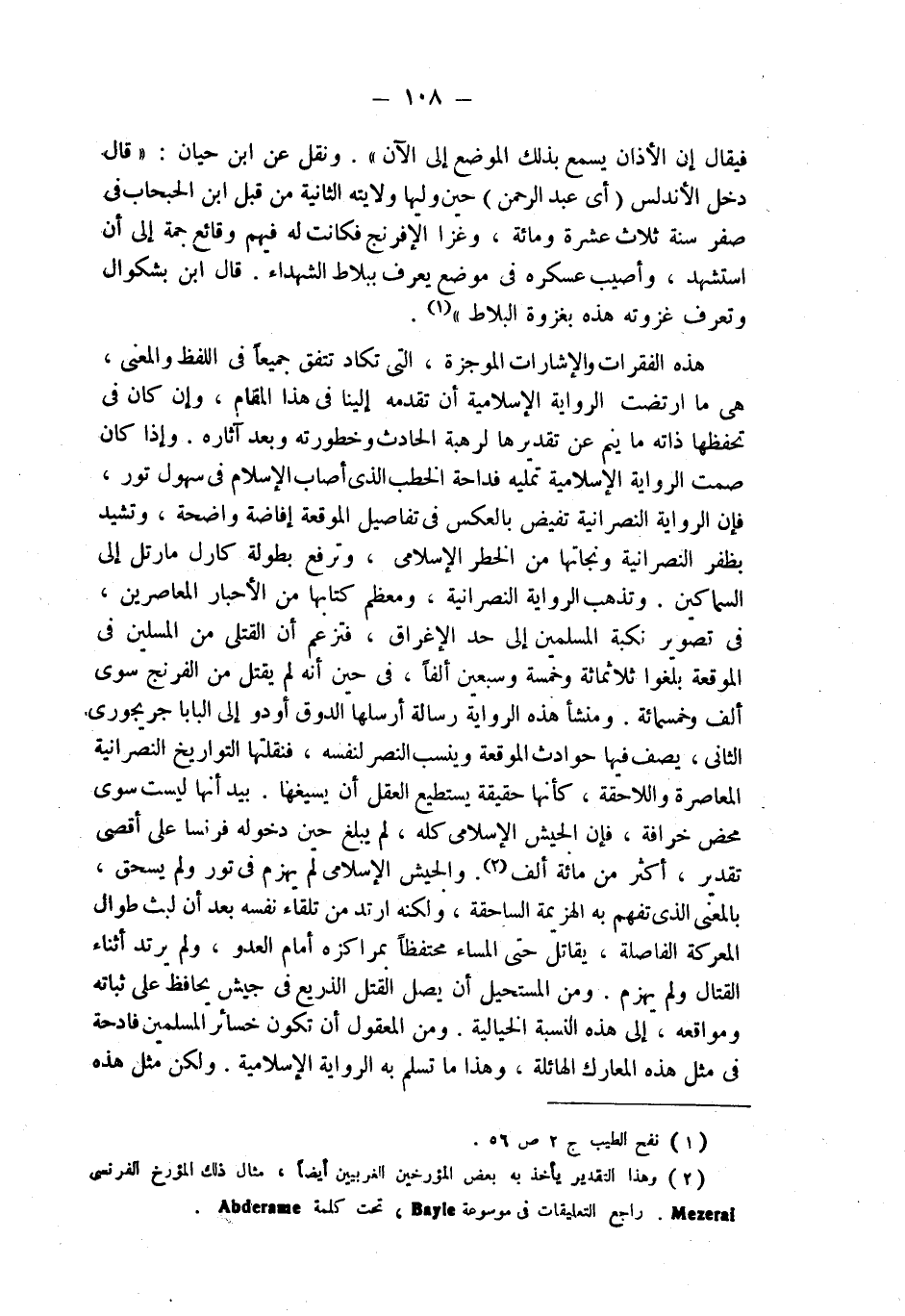 (¬2) وهذا التقدير يأخذ به بعض الؤرخين الغربيين أيضا، مثال ذلك المؤرخ الفرنسي Mezeral. راجع التعليقات في موسوعة Bayle، تحت كلمة Abderame.