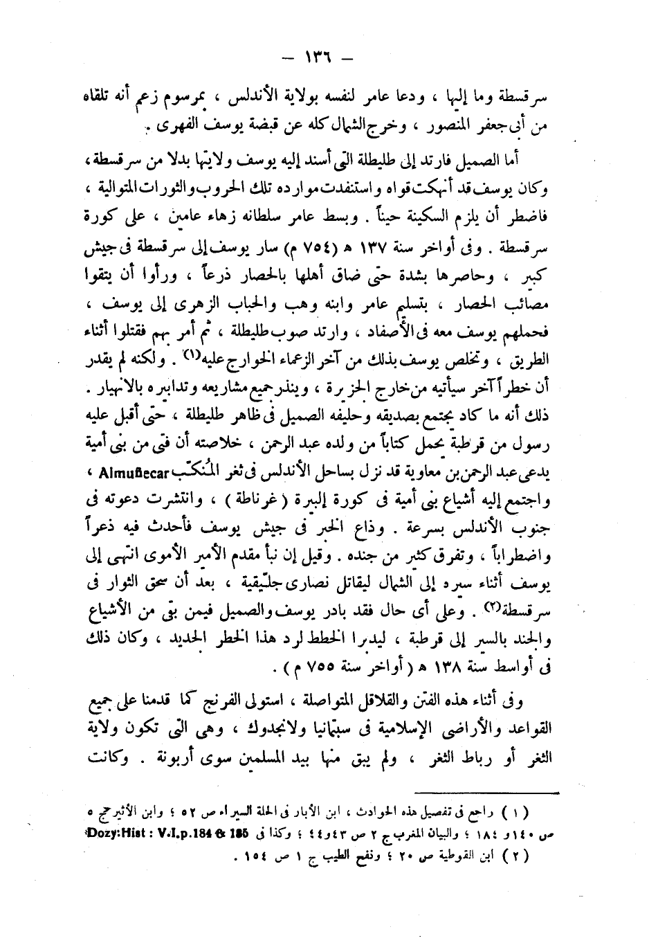 (¬1) راجع في تفصيل هذه الحوادث، ابن الأبار في الحلة السيراء ص 52؛ وابن الأثير ج 5 ص 140 و184؛ والبيان المغرب ج 2 ص 43 و44؛ وكذا في Dozy: Hist: V.I.p. 184 & 185