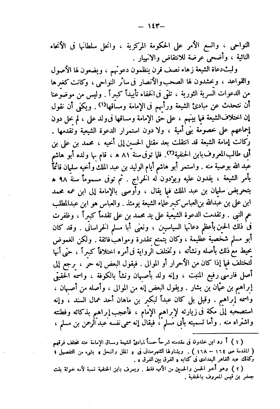 (¬1) أورد ابن خلدون في مقدمته شرحا حسنا لمبادىء الشيعة ومساق الإمامة عند مختلف فرقهم (المقدمة ص 164 - 168). ويتناولها الشهرستاني في " الملل والنحل " بشيء من التفصيل؛ وكذلك عبد القاهر البغدادي في كتابه " الفرق بين الفرق ".