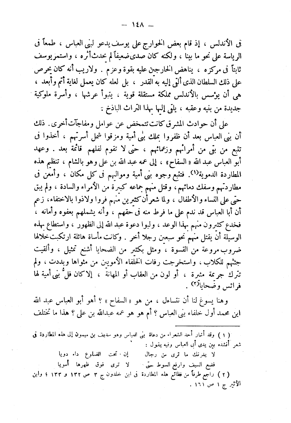 (¬1) وقد أشار أحد الشعراء من دعاة بني العباس وهو سديف بن ميمون إلى هذه المطاردة في شعر أنشده بين يدي أبى العباس وفيه يقول: