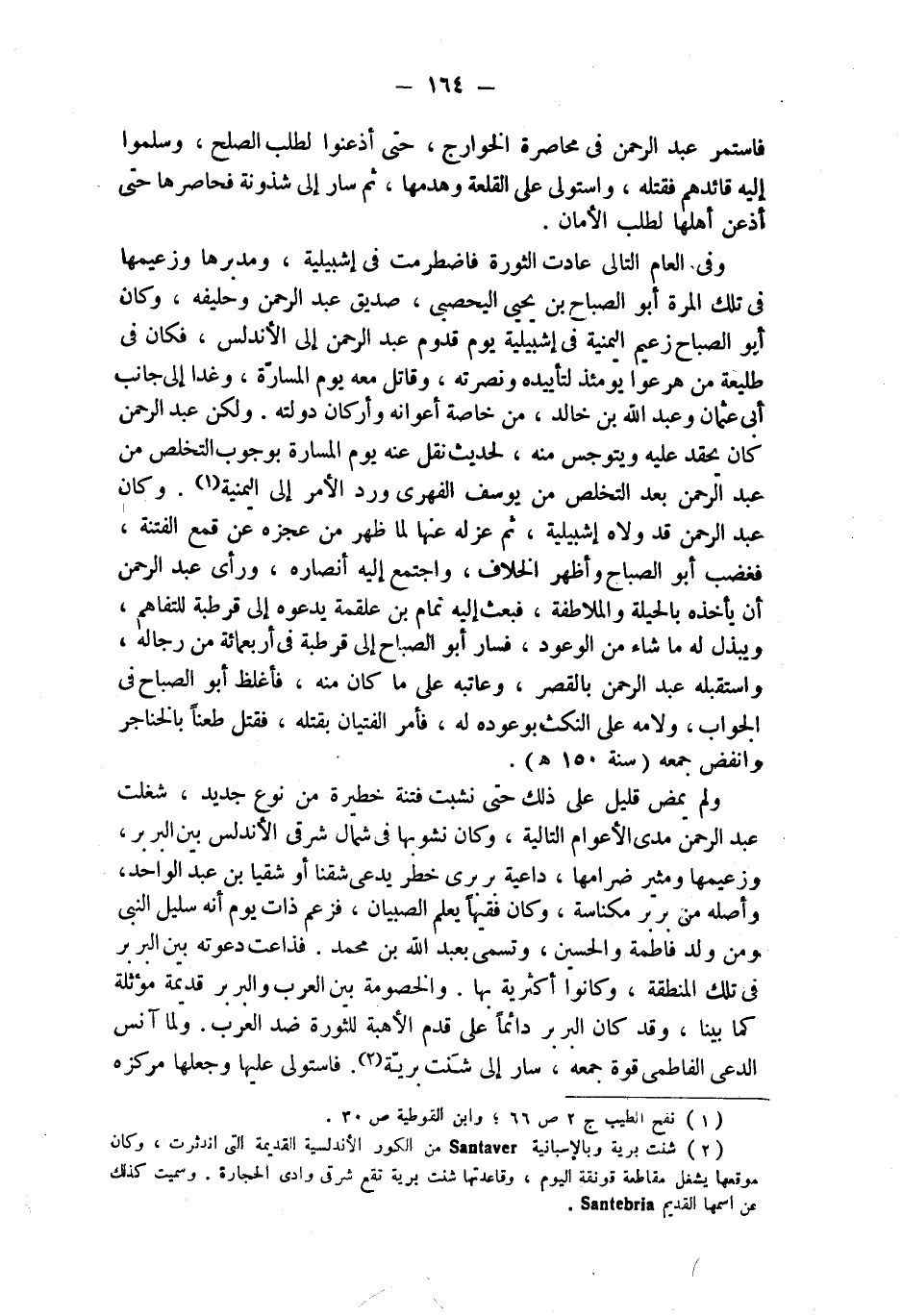 وفي العام التالي عادت الثورة فاضطرمت في إشبيلية، ومدبرها وزعيمها في تلك المرة أبو الصباح بن يحيى اليحصبي، صديق عبد الرحمن وحليفه، وكان أبو الصباح زعيم اليمنية في إشبيلية يوم قدوم عبد الرحمن إلى الأندلس، فكان في طليعة من هرعوا يومئذ لتأييده ونصرته، وقاتل معه يوم المسارة، وغدا إلى جانب أبى عثمان وعبد الله بن خالد، من خاصة أعوانه وأركان دولته. ولكن عبد الرحمن كان يحقد عليه ويتوجس منه، لحديث نقل عنه يوم المسارة بوجوب التخلص من عبد الرحمن بعد التخلص من يوسف الفهري ورد الأمر إلى اليمنية (¬1). وكان عبد الرحمن قد ولاه إشبيلية، ثم عزله عنها لما ظهر من عجزه عن قمع الفتنة، فغضب أبو الصباح وأظهر الخلاف، واجتمع إليه أنصاره، ورأى عبد الرحمن أن يأخذه بالحيلة والملاطفة، فبعث إليه تمام بن علقمة يدعوه إلى قرطبة للتفاهم، ويبذل له ما شاء من الوعود، فسار أبو الصباح إلى قرطبة في أربعمائة من رجاله، واستقبله عبد الرحمن بالقصر، وعاتبه على ما كان منه، فأغلظ أبو الصباح في الجواب، ولامه على النكث بوعوده له، فأمر الفتيان بقتله، فقتل طعناً بالخناجر وانفض جمعه (سنة 150هـ).