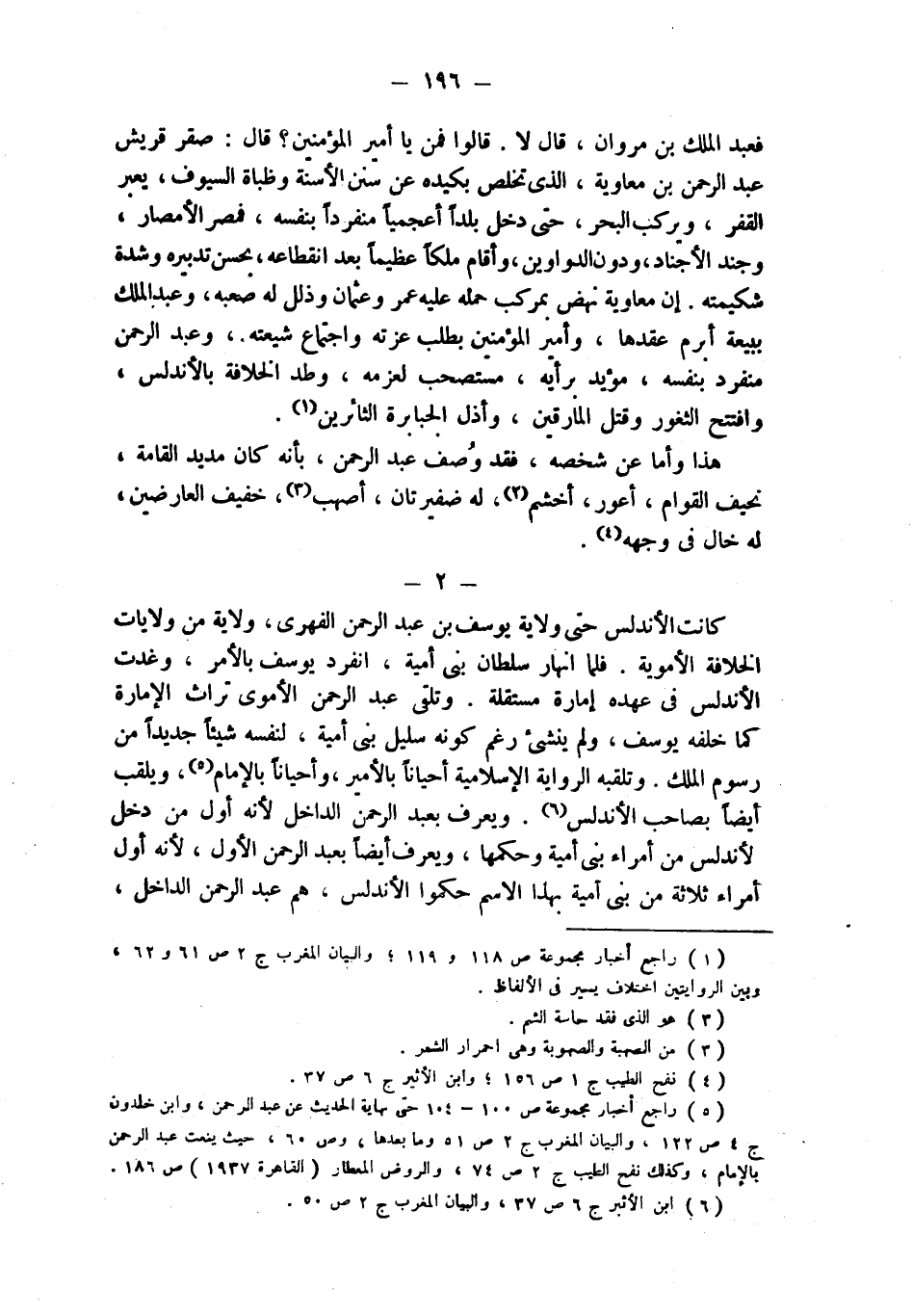 (¬5) راجع أخبار مجموعة ص 100 - 104 حتى نهاية الحديث عن عبد الرحمن، وابن خلدون ج 4 ص 122، والبيان المغرب ج 2 ص 51 وما بعدها، وص 60، حيث ينعت عبد الرحمن بالإمام، وكذلك نفح الطيب ج 2 ص 74، والروض المعطار (القاهرة 1937) ص 186.