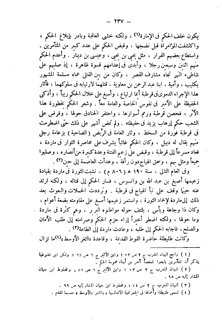 (¬1) راجع البيان المغرب ج 2 ص 73؛ وابن الأثير ج 6 ص 66؛ ولكن ابن القوطية يذكر أن المتآمرين بايعوا شخصاً آخر من أبناء عمومة الحكم.