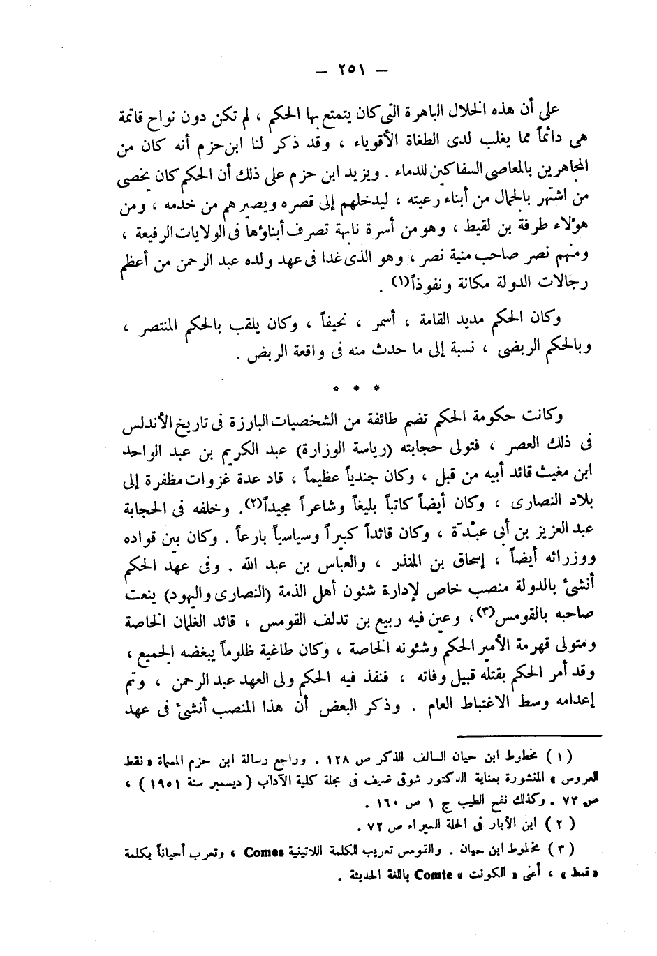 (¬3) مخطوط ابن حيان. والقومس تعريب للكلمة اللاتينية Comes، وتعرب أحياناً بكلمة " قمط "، أعني " الكونت " Comte باللغة الحديثة.