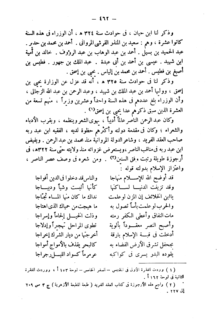 (¬2) راجع هذه الأرجوزة في كتاب العقد الفريد (طبعة المطبعة الأزهرية) ج 3 ص 209 إلى 227.