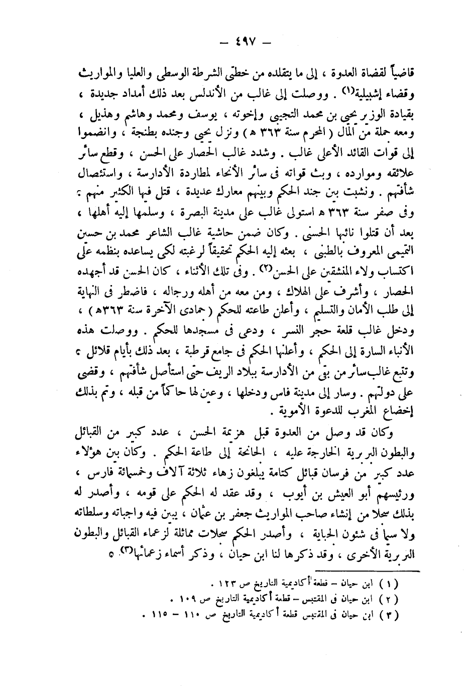(¬1) ابن حيان - قطعة أكاديمية التاريخ ص 123.