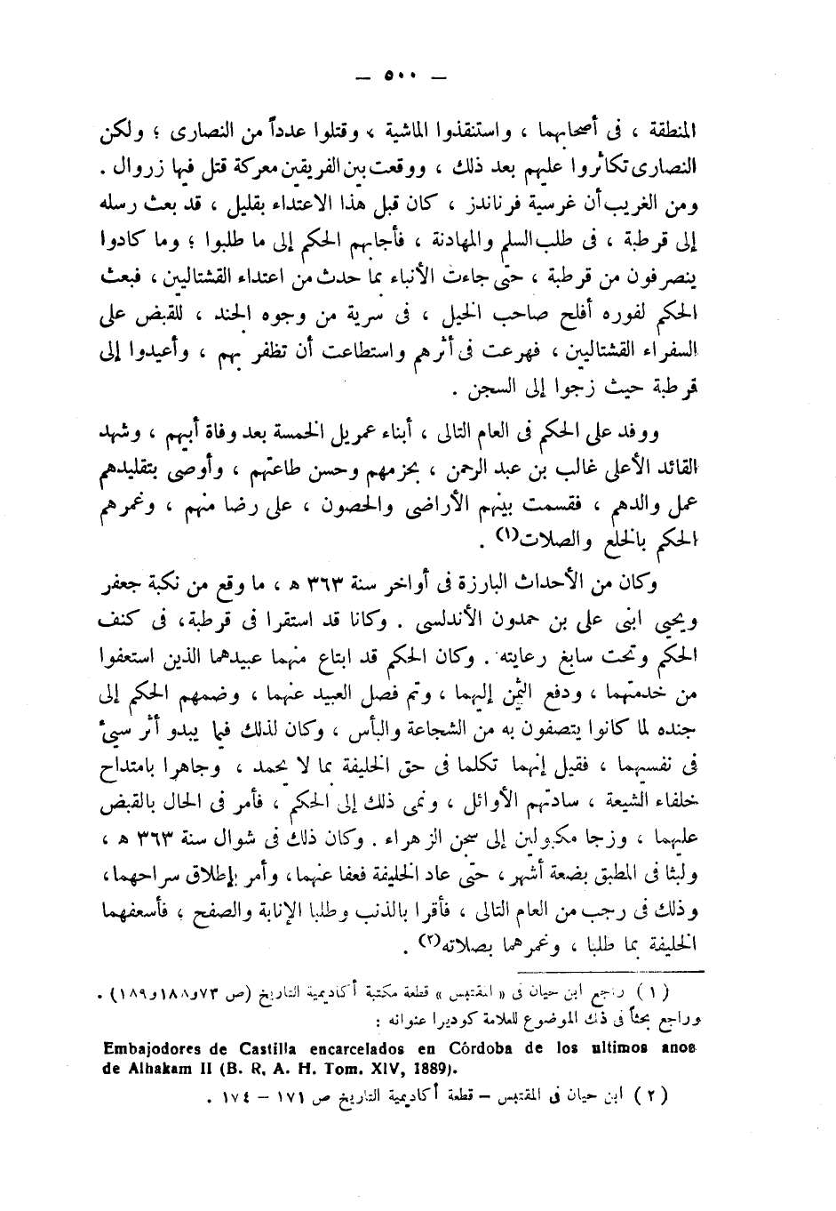 (¬1) راجع ابن حيان في " المقتبس " قطعة مكتبة أكاديمية التاريخ (ص 73 و188 و189). وراجع بحثاً في ذلك الموضوع للعلامة كوديرا عنوانه: