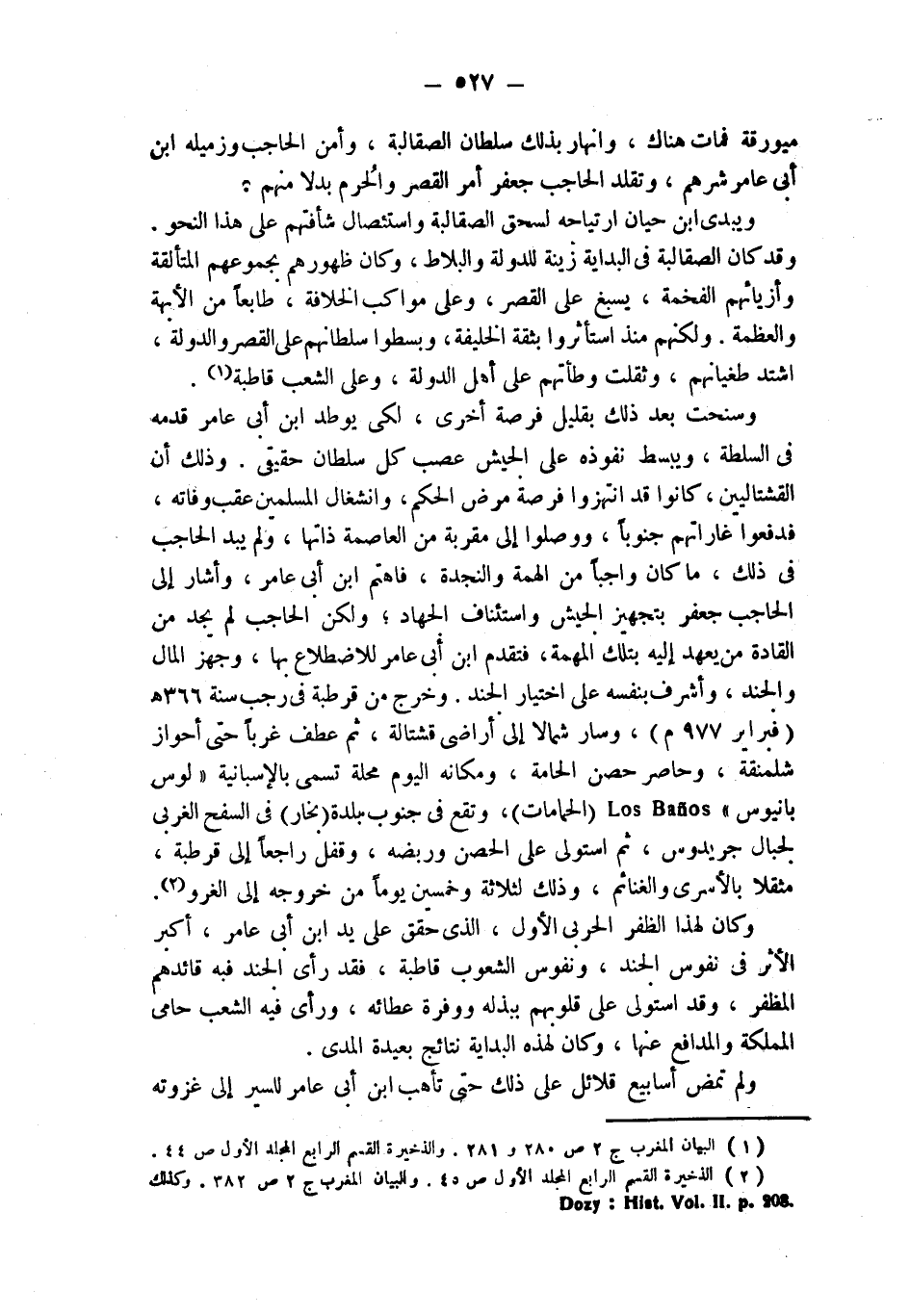(¬2) الذخيرة القسم الرابع المجلد الأول ص 45. والبيان المغرب ج 2 ص 382. وكذلك Dozy: Hist. Vol. II. p. 208.