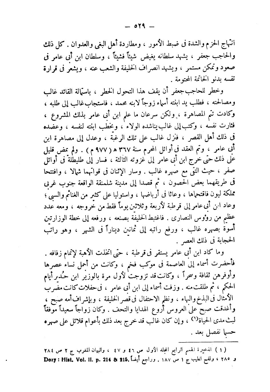 (¬1) الذخيرة القسم الرابع المجلد الأول ص 46 و47، والبيان المغرب ج 2 ص 284 و285، ونفح الطيب ج 1 ص 187. وراجع أيضاً. Dozy: Hist. Vol. II. p. 214 & 215.