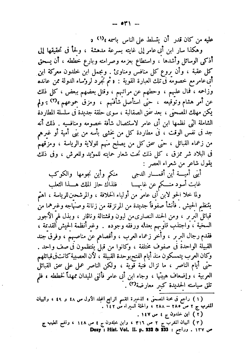 (¬3) البيان المغرب ج 2 ص 316، وابن خلدون ج 4 ص 148، ونفح الطيب ج 1 ص 137. وراجع: Dozy: Hist. Vol. II. p. 232 & 233