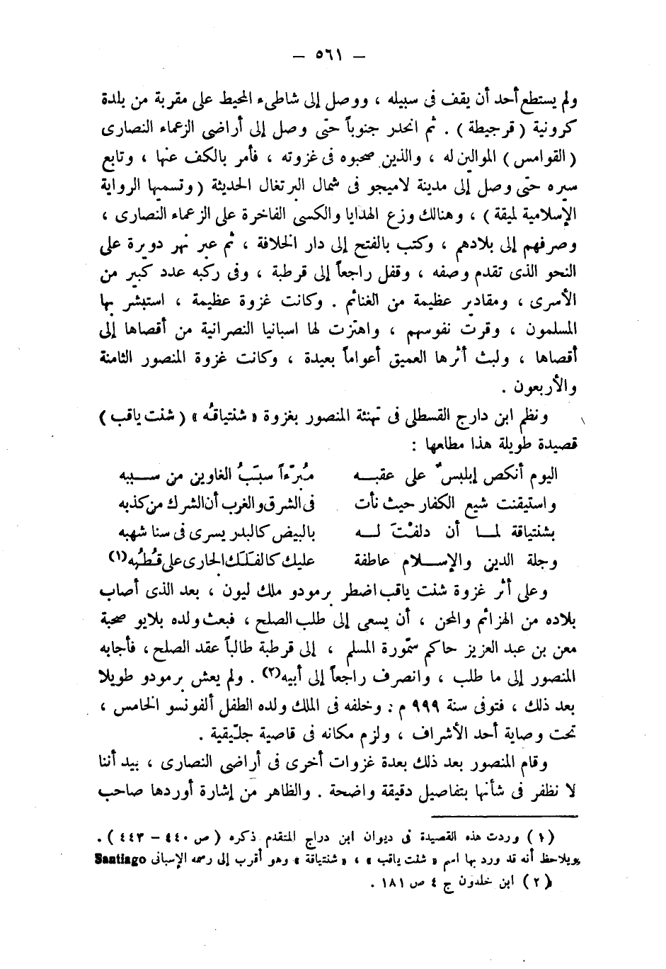 ونظم ابن دارج القسطلي في تهنئة المنصور بغزوة " شنتياقُه " (شنت ياقب) قصيدة طويلة هذا مطلعها:
