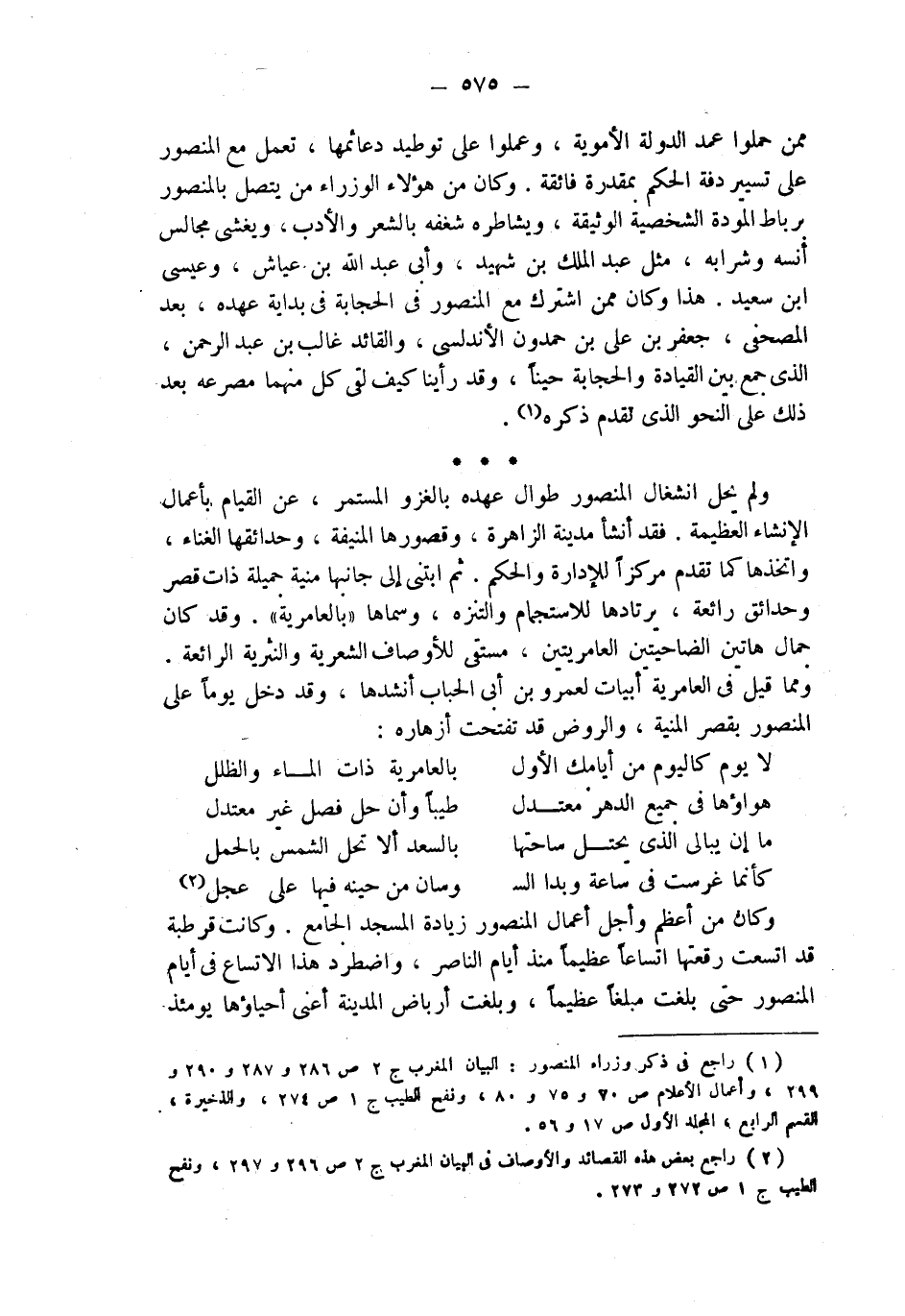 (¬2) راجع بعض هذه القصائد والأوصاف في البيان المغرب ج 2 ص 296 و297، ونفح الطيب ج 1 ص 272 و273.