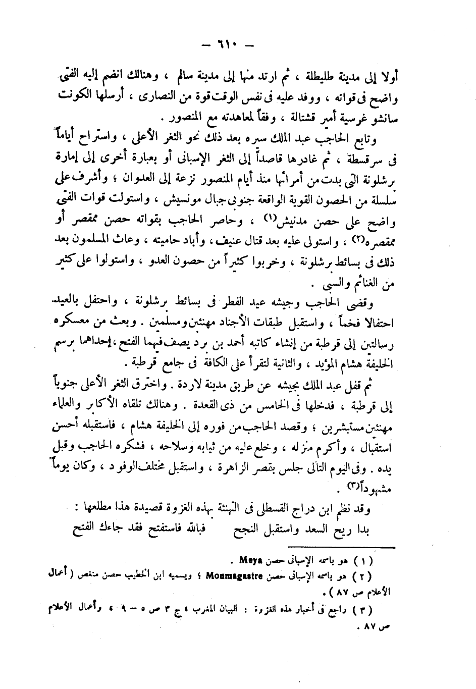 (¬3) راجع في أخبار هذه الغزوة: البيان المغرب، ج 3 ص 5 - 9، وأعمال الأعلام ص 87.