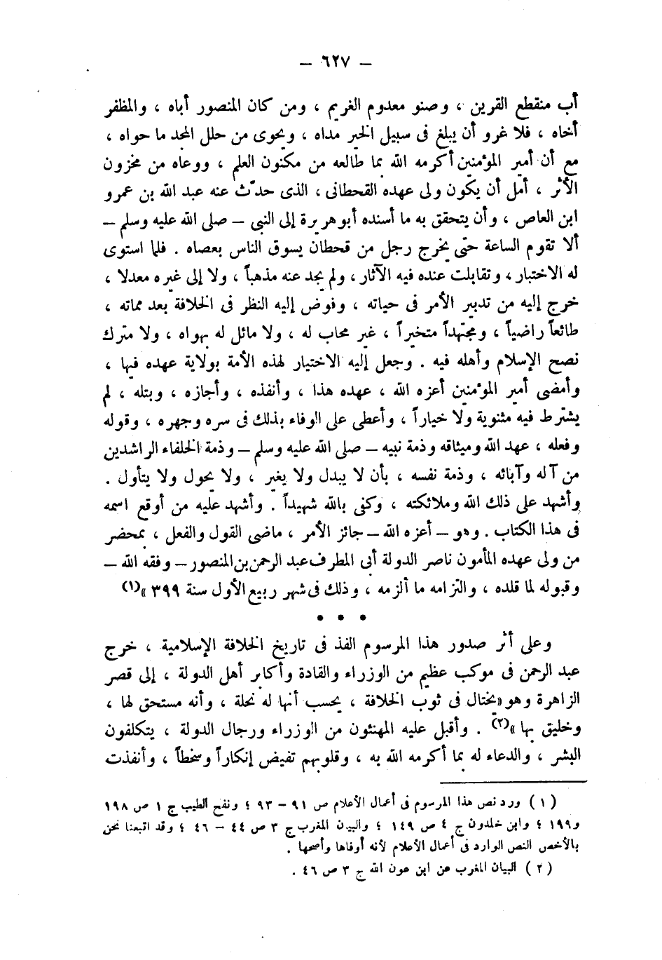 (¬1) ورد نص هذا المرسوم في أعمال الأعلام ص 91 - 93؛ ونفح الطيب ج 1 ص 198 و199؛ وابن خلدون ج 4 ص 149؛ والبيان المغرب ج 3 ص 44 - 46؛ وقد اتبعنا نحن بالأخص النص الوارد في أعمال الأعلام لأنه أوفاها وأصحها.