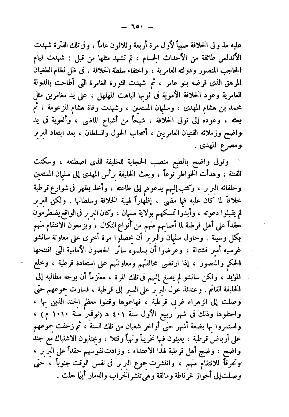 عليه مذ ولى الخلافة صبياً لأول مرة أربعة وثلاثون عاماً، وفي تلك الفترة شهدت الأندلس طائفة من الأحداث الجسام، لم تشهد مثلها من قبل: شهدت قيام الحاجب المنصور ودولته العامرية، واختفاء سلطة الخلافة، في ظل نظام الطغيان المرهق الذي فرضه بنو عامر، ثم شهدت الثورة الغامرة التي أطاحت بالدولة العامرية وعود الخلافة الأموية في ثوبها الباهت المهلهل، على يد مغامرين مثل محمد بن هشام المهدي، وسليمان المستعين، وشهدت وفاة هشام المزعومة، ثم بعثه، وعوده إلى تولي الخلافة، شبحاً من أشباح الماضي، وألعوبة في يد واضح وزملائه الفتيان العامريين، أصحاب الحول والسلطان، بعد ابتعاد البربر ومصرع المهدي.
