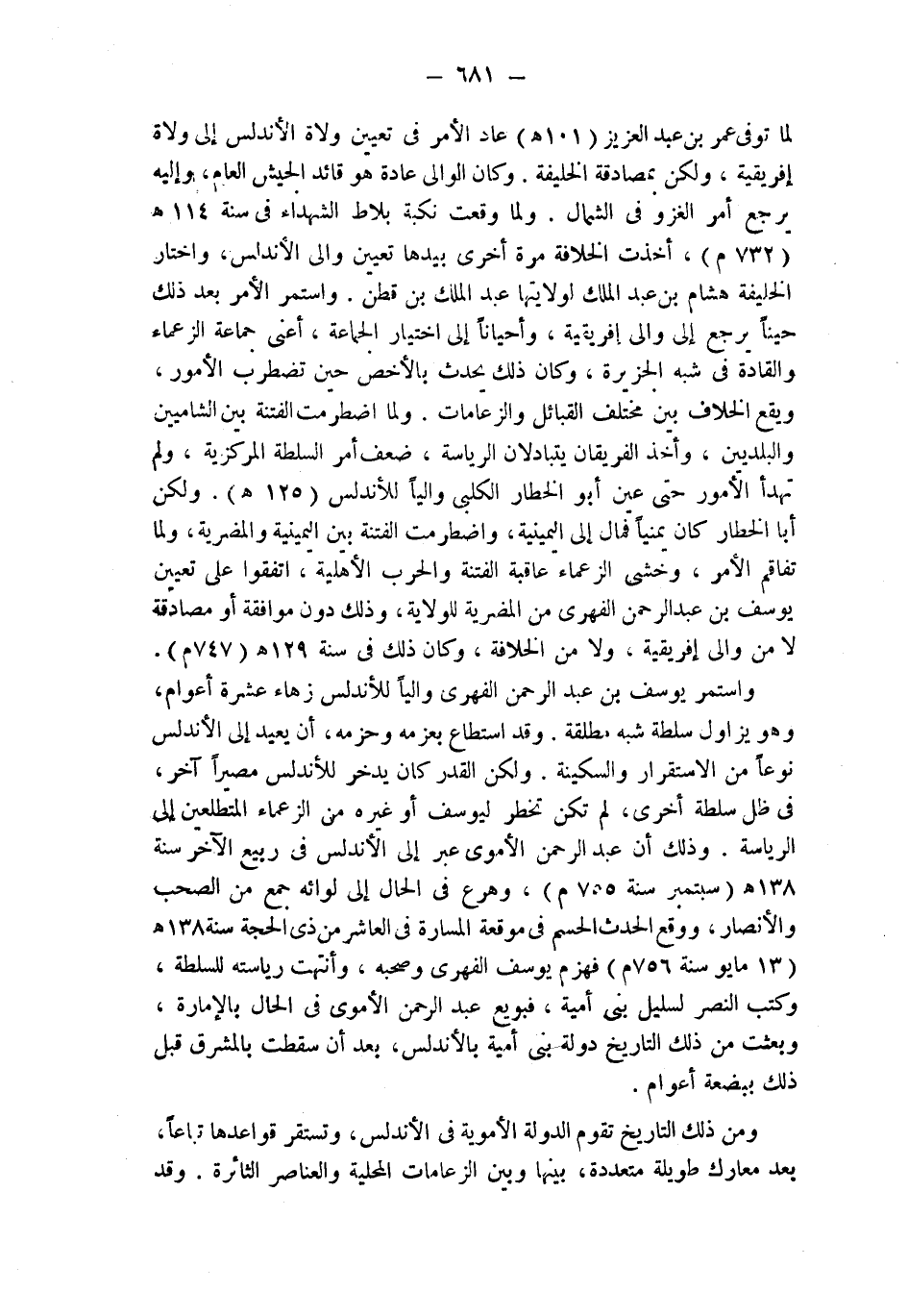 ومن ذلك التاريخ تقوم الدولة الأموية في الأندلس، وتستقر قواعدها تباعاً، بعد معارك طويلة متعددة، بينها وبين الزعامات المحلية والعناصر الثائرة. وقد