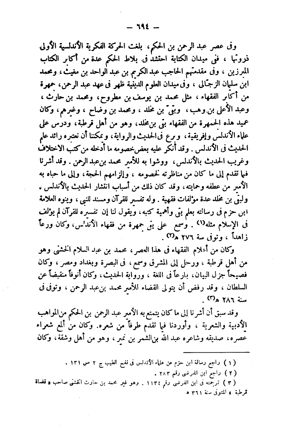 (¬1) راجع رسالة ابن حزم عن علماء الأندلس في نفح الطيب ج 2 ص 131.