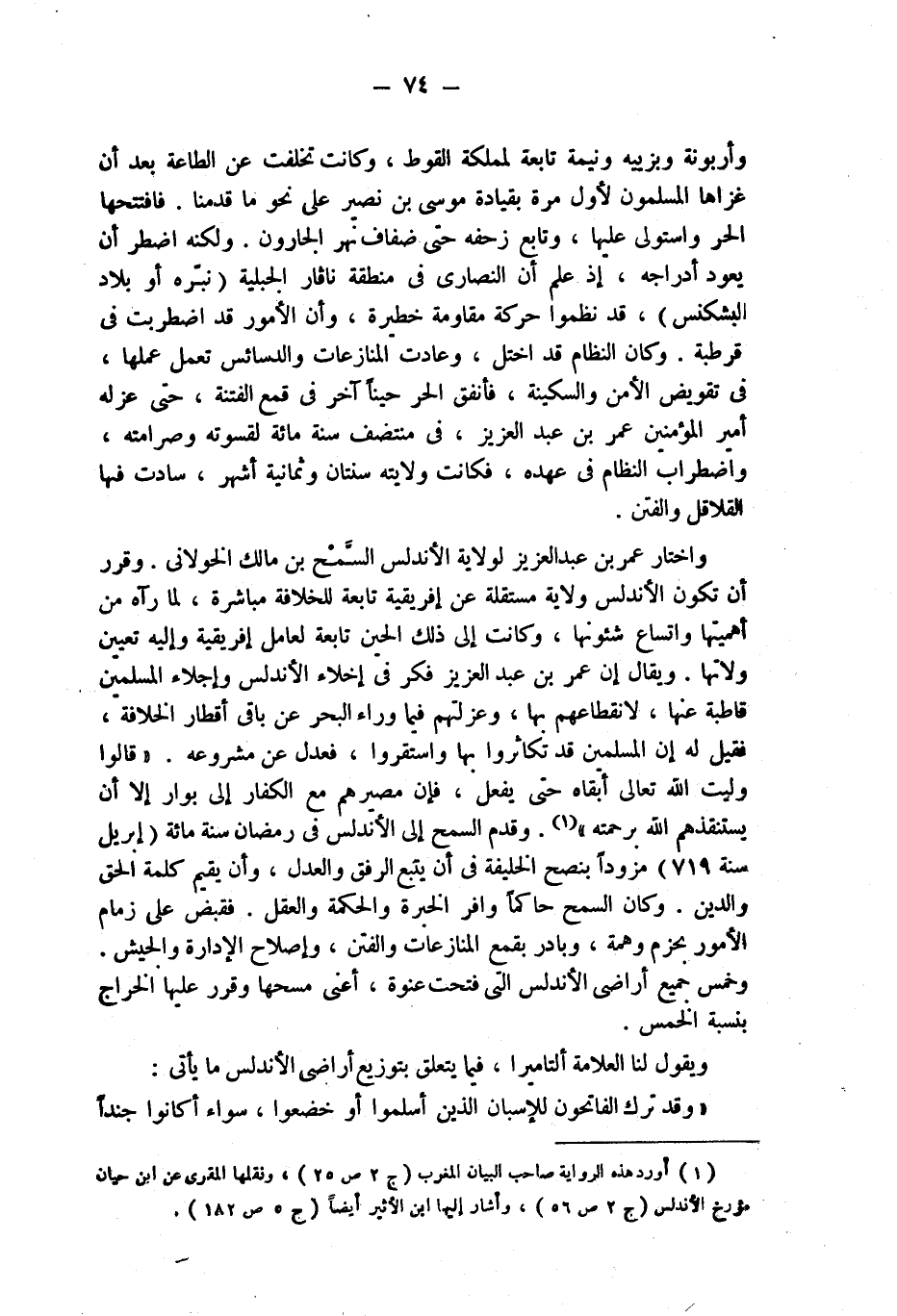 (¬1) أورد هذه الرواية صاحب البيان المغرب (ج 2 ص 25)، ونقلها المقري عن ابن حيان مؤرخ الأندلس (ج 2 ص 56)، وأشار إليها ابن الأثير أيضاً (ج 5 ص 182).