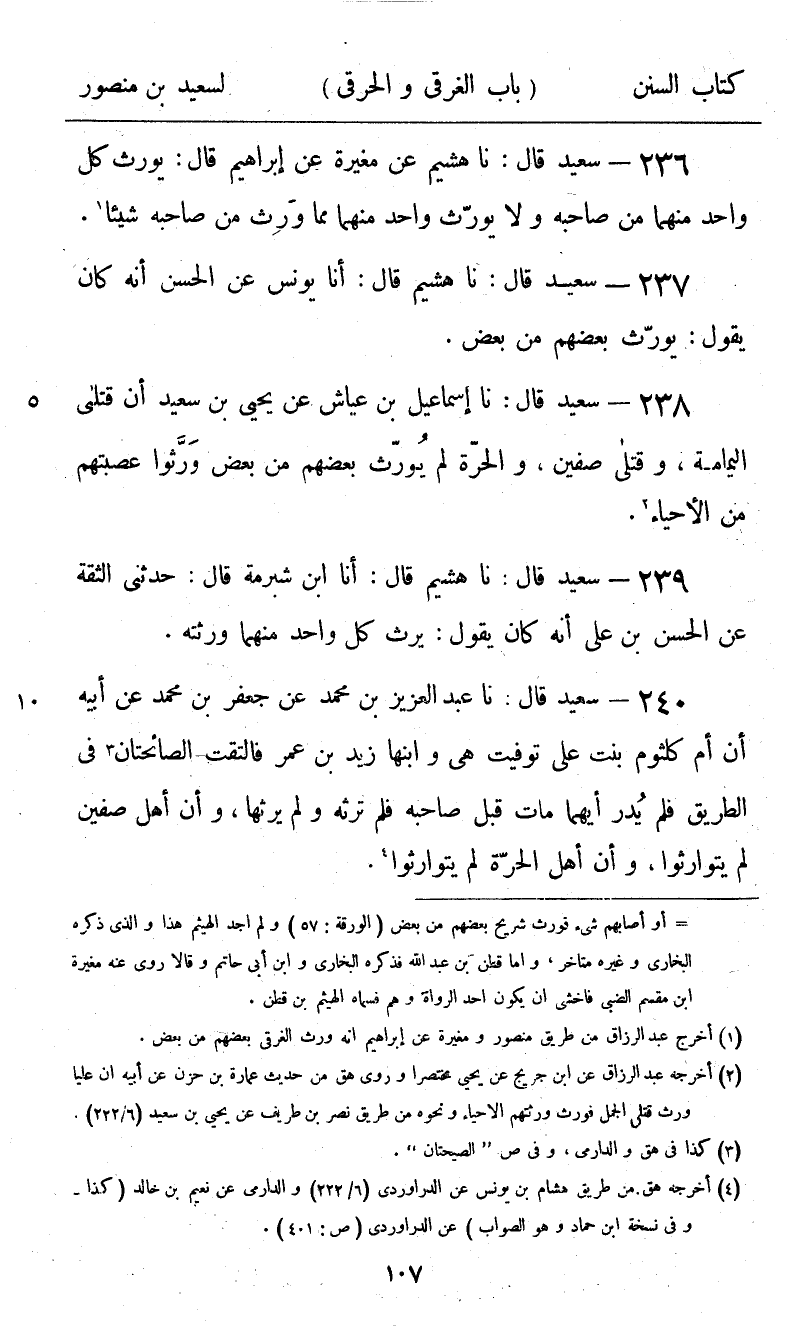 237 - سَعِيدٌ قَالَ: نا هُشَيْمٌ، قَالَ: أنا يُونُسُ، عَنِ الْحَسَنِ، أَنَّهُ كَانَ يَقُولُ: «§يُوَرَّثُ بَعْضُهُمْ مِنْ بَعْضٍ»