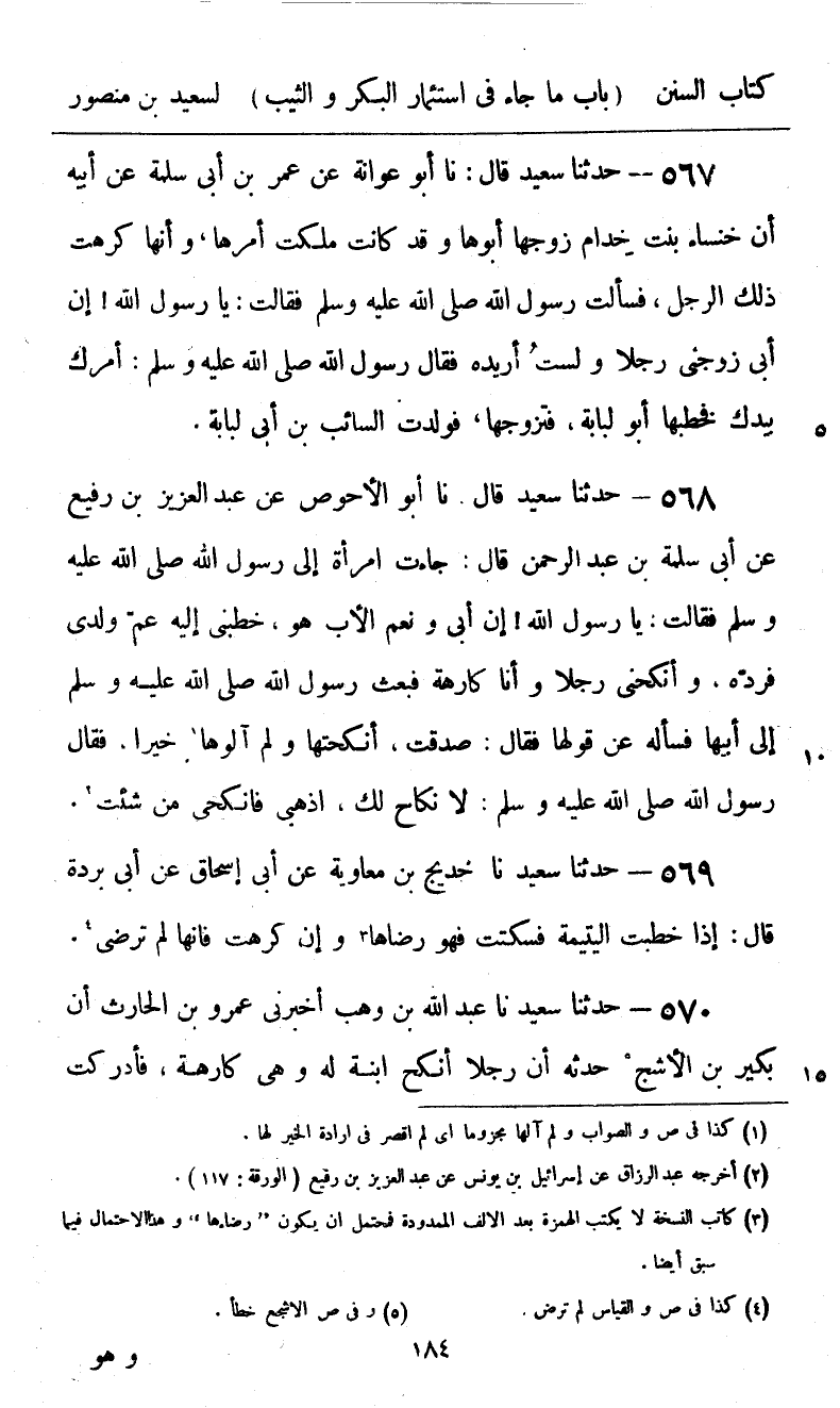 568 - حَدَّثَنَا سَعِيدٌ، قَالَ: نا أَبُو الْأَحْوَصِ، عَنْ عَبْدِ الْعَزِيزِ بْنِ رُفَيْعٍ، عَنْ أَبِي سَلَمَةَ بْنِ عَبْدِ الرَّحْمَنِ قَالَ: " جَاءَتِ امْرَأَةٌ إِلَى رَسُولِ اللَّهِ صَلَّى اللهُ عَلَيْهِ وَسَلَّمَ، فَقَالَتْ: يَا رَسُولَ اللَّهِ، إِنَّ أَبِي وَنِعْمَ الْأَبُ هُوَ، خَطَبَنِي إِلَيْهِ عَمُّ وَلَدِي فَرَدَّهُ، وَأَنْكَحَنِي رَجُلًا وَأَنَا كَارِهَةٌ. فَبَعَثَ رَسُولُ اللَّهِ صَلَّى اللهُ عَلَيْهِ وَسَلَّمَ إِلَى أَبِيهَا، فَسَأَلَهُ عَنْ قَوْلِهَا، فَقَالَ: صَدَقَتْ، أَنْكَحْتُهَا وَلَمْ آلُهَا خَيْرًا. فَقَالَ رَسُولُ اللَّهِ صَلَّى اللهُ عَلَيْهِ وَسَلَّمَ: «§لَا نِكَاحَ لَكِ، اذْهَبِي فَانْكِحِي مَنْ شِئْتِ»