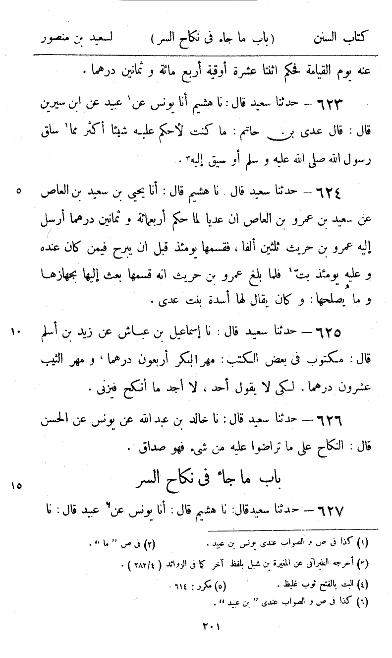 623 - حَدَّثَنَا سَعِيدٌ قَالَ: نا هُشَيْمٌ، أنا يُونُسُ، عَنْ عُبَيْدٍ، عَنِ ابْنِ سِيرِينَ، قَالَ: قَالَ عَدِيُّ بْنُ حَاتِمٍ: «§مَا كُنْتُ لِأَحْكُمَ عَلَيْهِ شَيْئًا أَكْثَرَ مِمَّا سَاقَ رَسُولُ اللَّهِ صَلَّى اللهُ عَلَيْهِ وَسَلَّمَ أَوْ سِيقَ إِلَيْهِ»