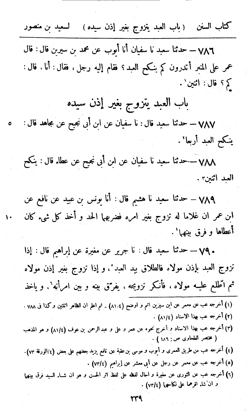 788 - حَدَّثَنَا سَعِيدٌ، نا سُفْيَانُ، عَنِ ابْنِ أَبِي نَجِيحٍ، عَنْ عَطَاءٍ قَالَ: «§يَنْكِحُ الْعَبْدُ اثْنَيْنِ»