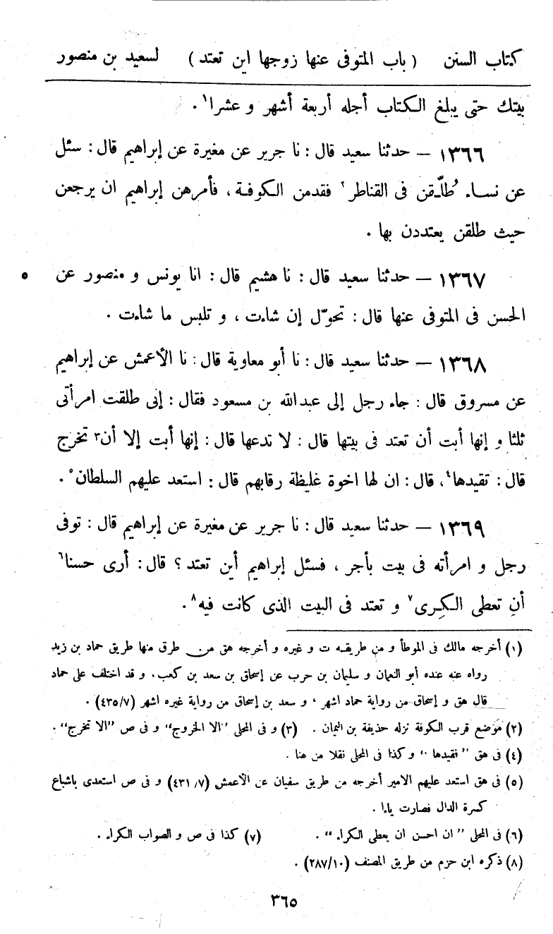 1366 - حَدَّثَنَا سَعِيدٌ قَالَ: نا جَرِيرٌ، عَنْ مُغِيرَةَ، عَنْ إِبْرَاهِيمَ، قَالَ: سُئِلَ عَنْ نِسَاءٍ، طُلِّقْنَ فِي الْقَنَاطِرِ، فَقَدِمْنَ الْكُوفَةَ، «فَأَمَرَهُنَّ إِبْرَاهِيمُ §أَنْ يَرْجِعْنَ حَيْثُ طُلِّقْنَ يَعْتَدِدْنَ بِهَا»