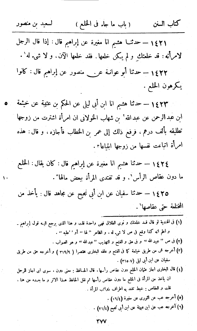 1424 - حَدَّثَنَا هُشَيْمٌ، أنا مُغِيرَةُ، عَنْ إِبْرَاهِيمَ، قَالَ: كَانَ يُقَالُ: «§الْخُلْعُ مَا دُونَ عِقَاصِ الرَّأْسِ، وَقَدْ تَفْتَدِي الْمَرْأَةُ بِبَعْضِ مَالِهَا»