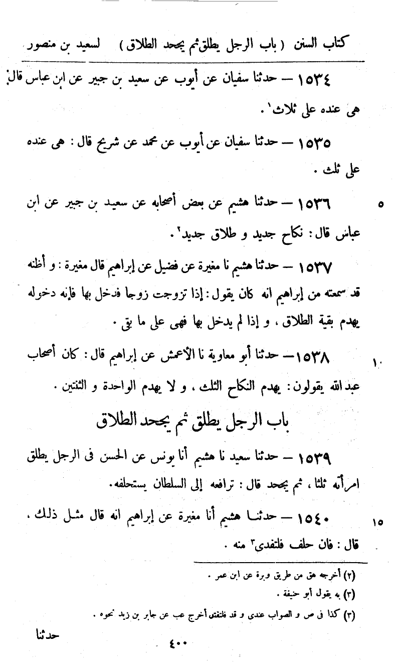 1539 - حَدَّثَنَا سَعِيدٌ نا هُشَيْمٌ، أنا يُونُسُ، عَنِ الْحَسَنِ، فِي الرَّجُلِ يُطَلِّقُ امْرَأَتَهُ ثَلَاثًا ثُمَّ يَجْحَدُ قَالَ: «§تُرَافِعُهُ إِلَى السُّلْطَانِ يَسْتَحْلِفُهُ»