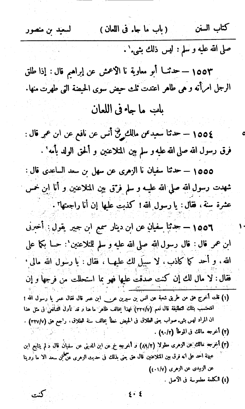 1554 - حَدَّثَنَا سَعِيدٌ، عَنْ مَالِكِ بْنِ أَنَسٍ، عَنْ نَافِعٍ، عَنِ ابْنِ عُمَرَ، قَالَ: «§فَرَّقَ رَسُولُ اللَّهِ صَلَّى اللهُ عَلَيْهِ وَسَلَّمَ بَيْنَ الْمُتَلَاعِنَيْنِ وَأَلْحَقَ الْوَلَدَ بِأُمِّهِ»