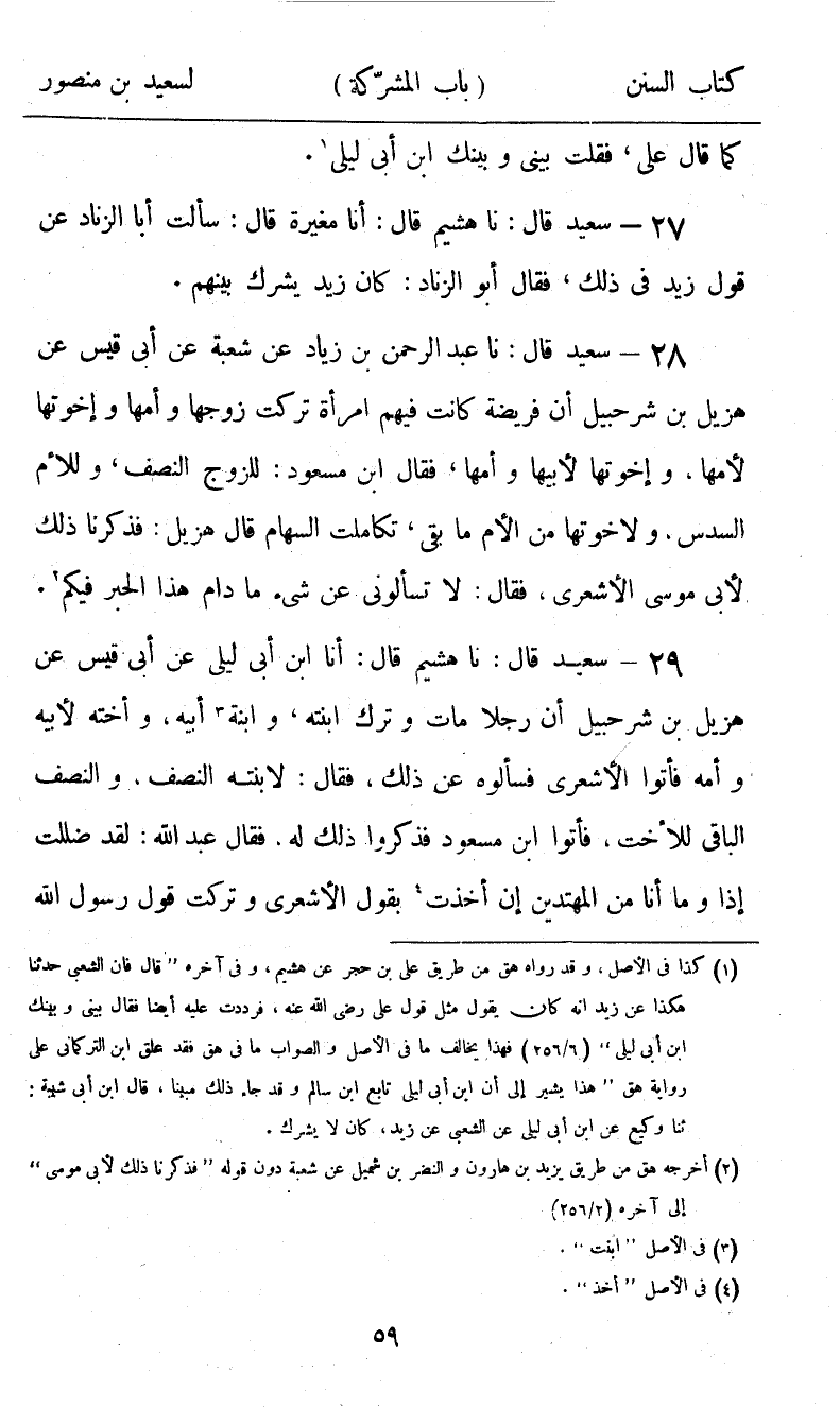 27 - سَعِيدٌ قَالَ: نا هُشَيْمٌ، قَالَ: أنا مُغِيرَةُ، قَالَ: سَأَلْتُ أَبَا الزِّنَادِ عَنْ قَوْلِ زَيْدٍ فِي ذَلِكَ، فَقَالَ أَبُو الزِّنَادِ: كَانَ زَيْدٌ «§يُشَرِّكُ بَيْنَهُمْ»