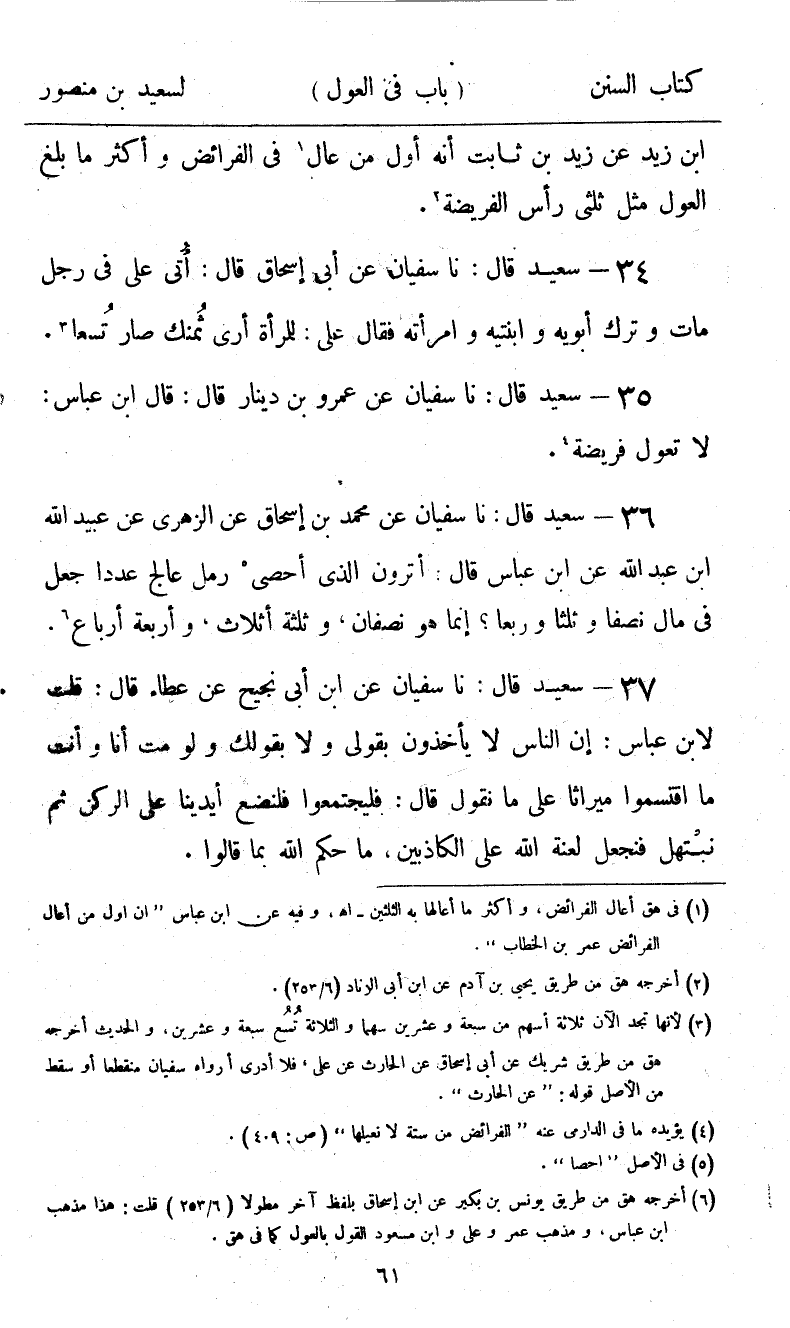 35 - سَعِيدٌ قَالَ: نا سُفْيَانُ، عَنْ عَمْرِو بْنِ دِينَارٍ، قَالَ: قَالَ ابْنُ عَبَّاسٍ: «§لَا تَعُولُ فَرِيضَةٌ»