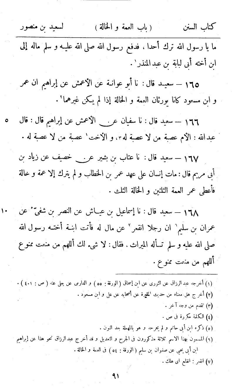 168 - سَعِيدٌ قَالَ: نا إِسْمَاعِيلُ بْنُ عَيَّاشٍ، عَنِ النَّضْرِ بْنِ شُفَيٍّ، عَنْ عِمْرَانَ بْنِ سُلَيْمٍ، أَنَّ رَجُلًا انْقَعَرَ عَنْ مَالٍ لَهُ، فَأَتَتِ ابْنَةُ أُخْتِهِ رَسُولَ اللَّهِ صَلَّى اللهُ عَلَيْهِ وَسَلَّمَ تَسْأَلُهُ الْمِيرَاثَ، فَقَالَ: «لَا شَيْءَ لَكِ، §اللَّهُمَّ مَنْ مَنَعْتَ مَمْنُوعٌ، اللَّهُمَّ مَنْ مَنَعْتَ مَمْنُوعٌ»