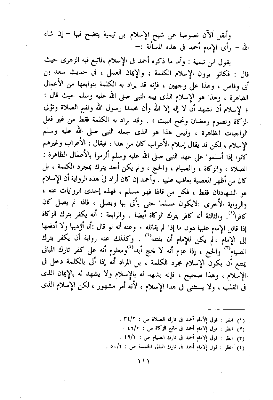(4) انظر: قول الإمام أحمد فى تارك المبانى الخمسة ص: 2/ 51، 52.