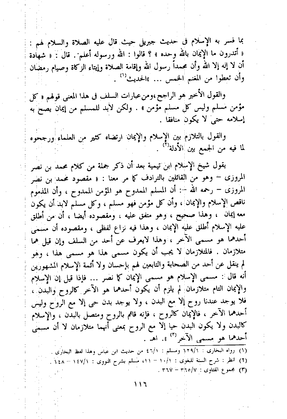 والقول بالتلازم بين الإسلام والإيمان ارتضاه كثير من العلماء ورجحوه لما فيه من الجمع بين الأدلة «2».