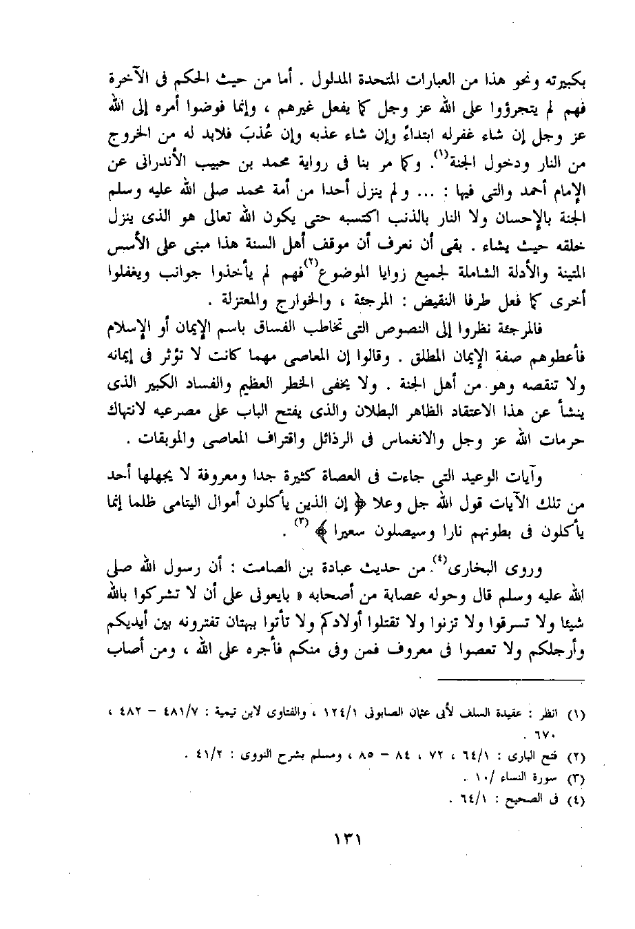 (1) انظر: عقيدة السلف لأبى عثمان الصابونى 1/ 124، والفتاوى لابن تيمية: 7/ 481 - 482، 670.