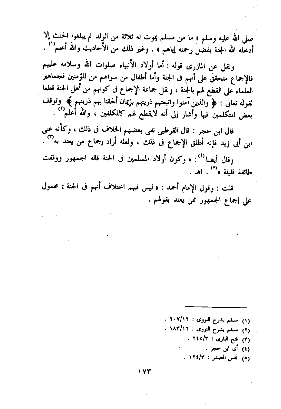 وقال أيضا «4»: «و كون أولاد المسلمين فى الجنة قاله الجمهور ووقفت طائفة قليلة» «5». ا ه.